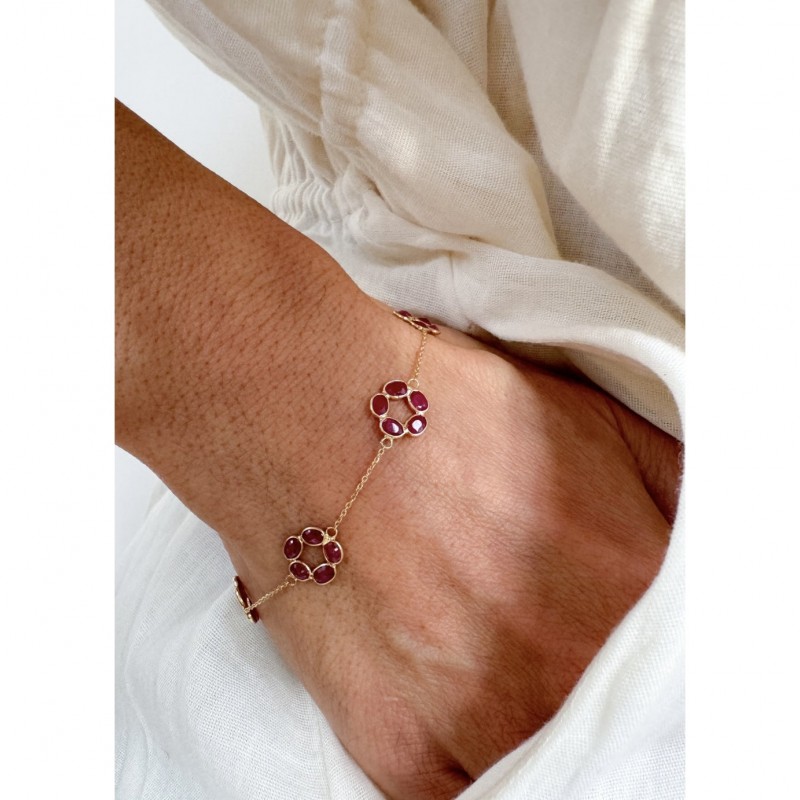 Dieser einzigartige Rubin-Armband ist aus 18 Karat Gold.