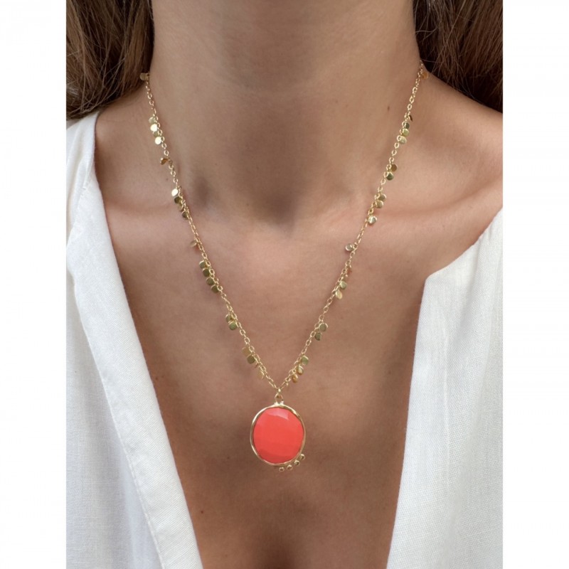 Diese zarte, 18-karätig vergoldete Halskette verfügt über einen sanft facettierten Steinanhänger, der bei jeder Bewegung das Licht einfängt. Jedes kleine Pailletten-Element entlang der Kette wird einzeln von Hand befestigt und verleiht ihr ein dezentes Funkeln, das sowohl feminin als auch verspielt wirkt. Leicht und elegant setzt dieses Schmuckstück jedes Dekolleté wunderbar in Szene und verleiht sowohl Alltagsoutfits als auch besonderen Anlässen einen Hauch von raffinierter Eleganz.