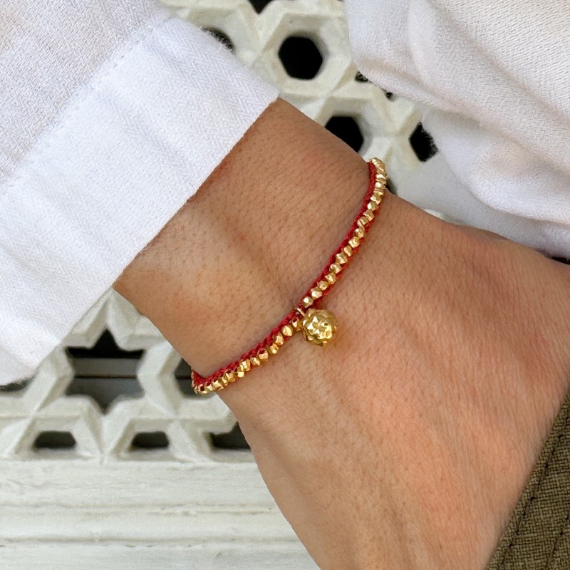 Material: 18 carat gold plated brass,  Hand made braided cotton thread.