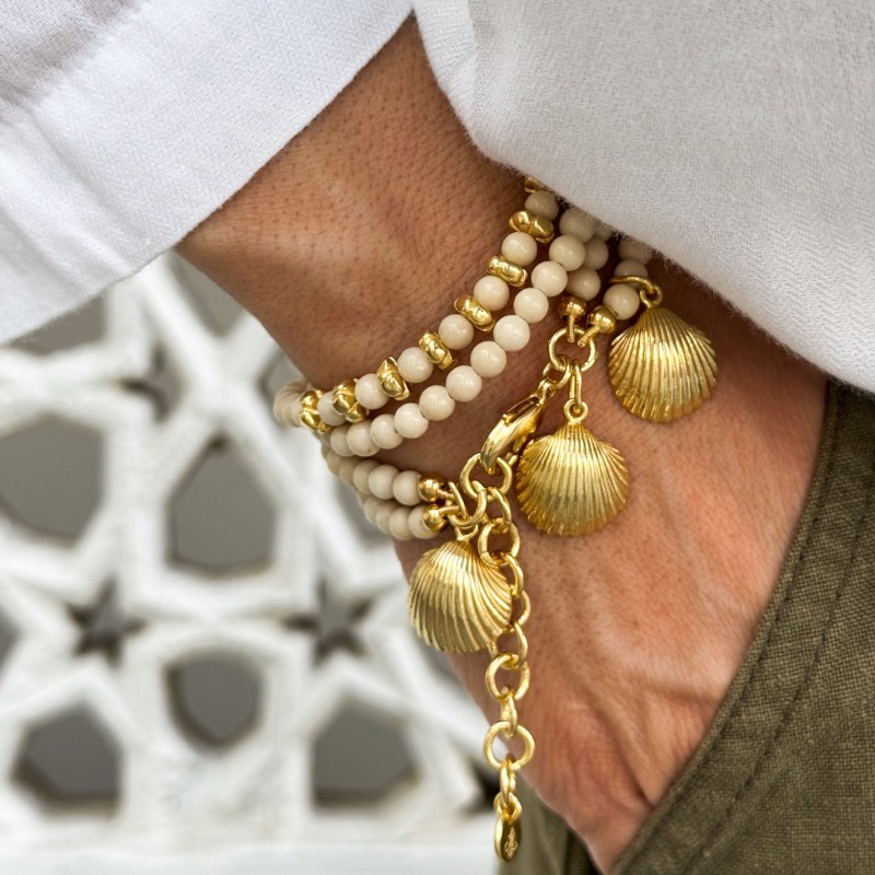 Material: Cream white fossil beads, 18 carat gold plated brass.