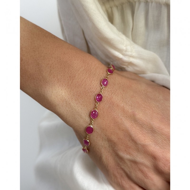 This unique Ruby bracelet is made from 18kt yellow gold and adorned with oval-shaped faceted Ruby stones.