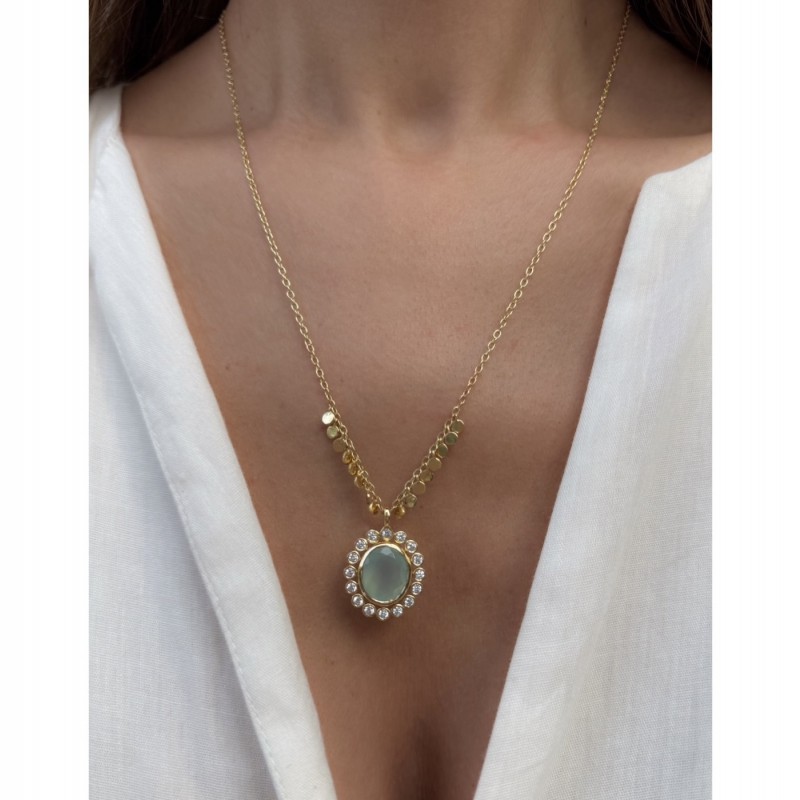 Material: 18 carat gold plated brass. Faceted aqua Jade. Measurement of the pendant: approx. 22 mm x 18 mm.