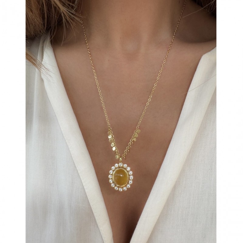 Material: 18 carat gold plated brass. Yellow glass pendant. Measurement of the pendant: approx. 22 mm x 18 mm.