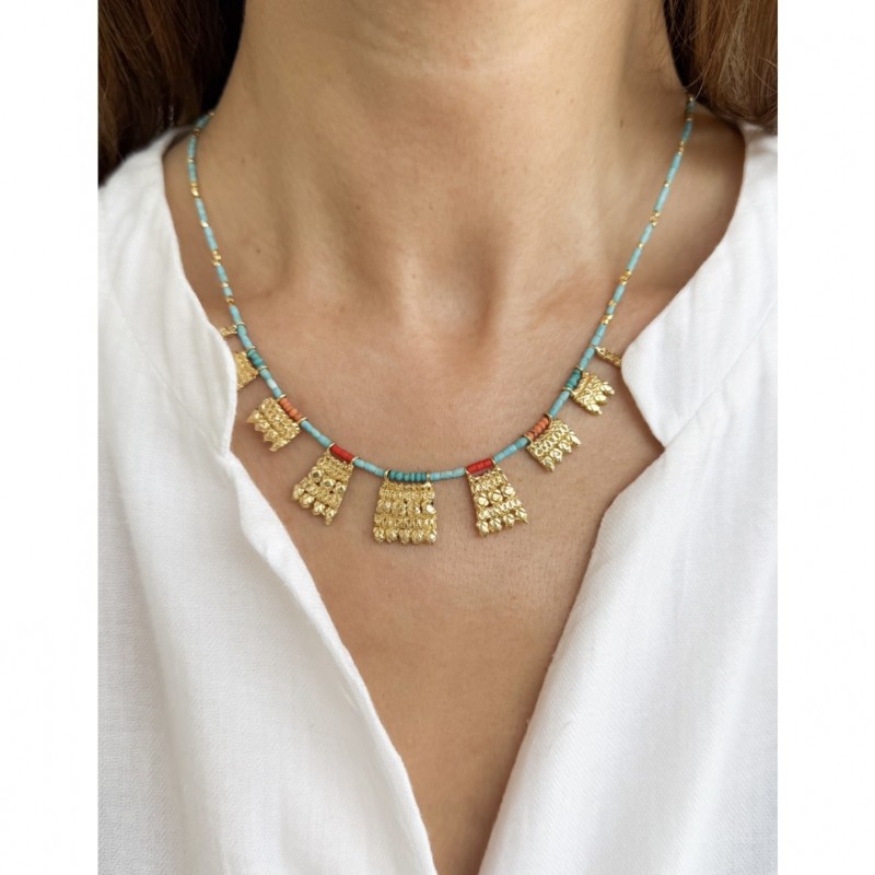 Material: 18 carat gold plated brass. Multicolour semi precious beads.