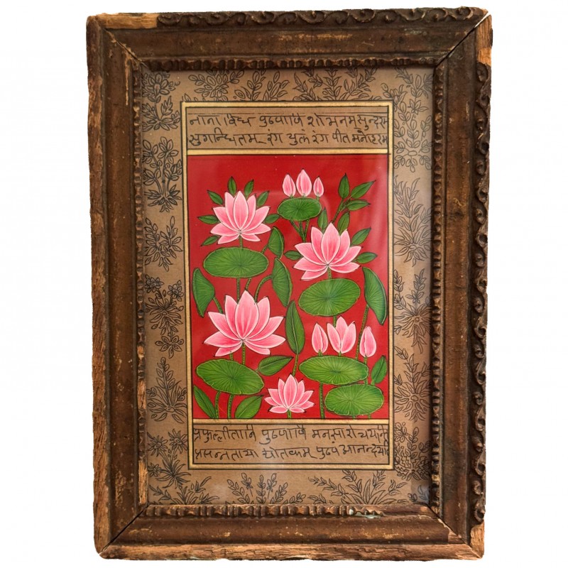 Exploring the little streets of beautiful Indian cities, on my search for rare treasures, I have personally selected these unique hand painted original paintings from the local markets and antique dealers. Each painting comes with its own beautiful wooden vintage frame, which has also been specifically selected by me, for each individual painting. We have cleaned and restored all frames while maintaining their special vintage character.