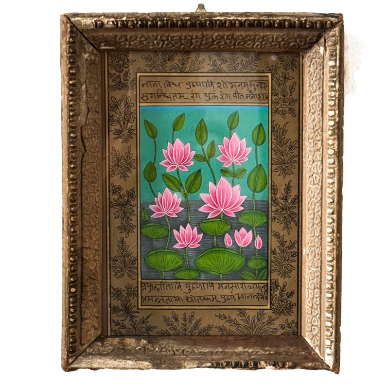 Exploring the little streets of beautiful Indian cities, on my search for rare treasures, I have personally selected these unique hand painted original paintings from the local markets and antique dealers. Each painting comes with its own beautiful wooden vintage frame, which has also been specifically selected by me, for each individual painting. We have cleaned and restored all frames while maintaining their special vintage character.