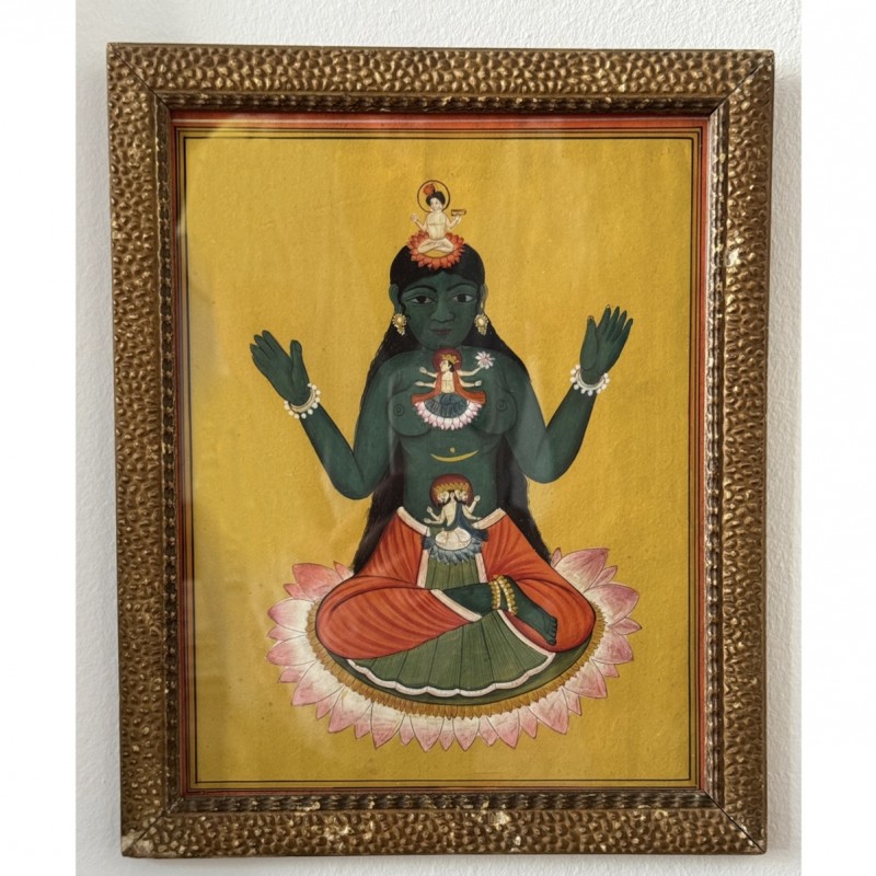 Exploring the little streets of beautiful Indian cities, on my search for rare treasures, I have personally selected these unique hand painted original paintings from the local markets and antique dealers. Each painting comes with its own beautiful wooden vintage frame, which has also been specifically selected by me, for each individual painting. We have cleaned and restored all frames while maintaining their special vintage character.