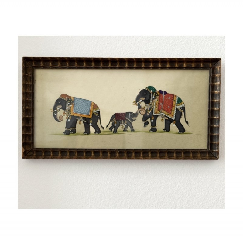 Exploring the little streets of beautiful Indian cities, on my search for rare treasures, I have personally selected these unique hand painted original paintings from the local markets and antique dealers. Each painting comes with its own beautiful wooden vintage frame, which has also been specifically selected by me, for each individual painting. We have cleaned and restored all frames while maintaining their special vintage character.