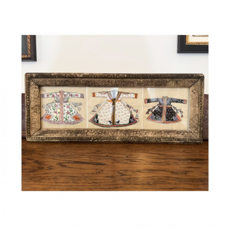 Exploring the little streets of beautiful Indian cities, on my search for rare treasures, I have personally selected these unique hand painted original paintings from the local markets and antique dealers. Each painting comes with its own beautiful wooden vintage frame, which has also been specifically selected by me, for each individual painting. We have cleaned and restored all frames while maintaining their special vintage character.