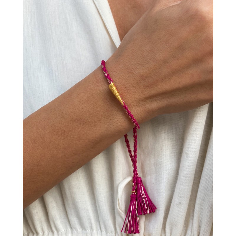 Material: 24 carat gold plated brass, Hand made twisted cotton thread.