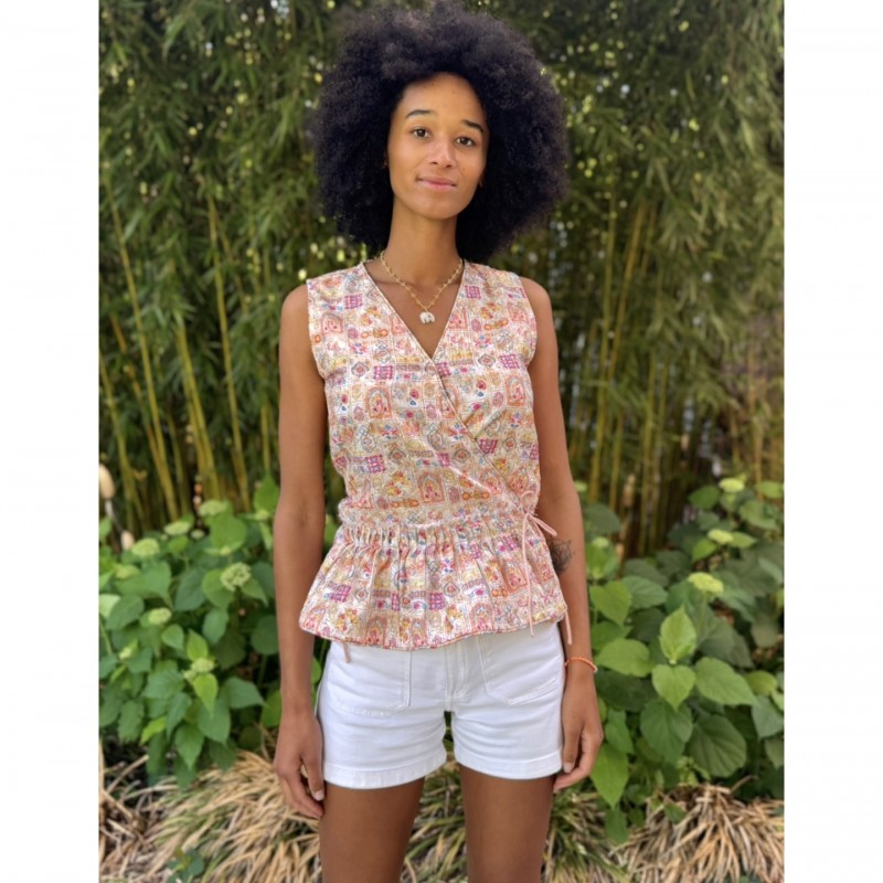 The Sara Lashay wrap top exudes elegance with its exquisite craftsmanship. Hand-made from delicate fabric, it's adorned with beautifully embroidered light transparent sequins, creating a subtle yet captivating shine. This one-of-a-kind piece is an ideal choice for special occasions, whether it's a sophisticated dinner event or a romantic wedding ceremony or casual. The wrap design not only flatters the figure but also adds an element of grace to your overall look, making it a perfect addition to any stylish wardrobe