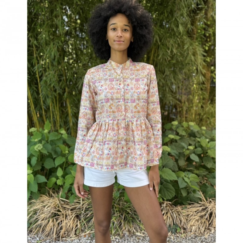 Introducing the stunning Sara Lashay top! This versatile piece can be worn as both a blouse and a jacket, making it a true wardrobe essential. Crafted from a beautiful, rare fabric, it's meticulously embroidered and embellished with tiny sequins that provide a captivating shine. The delicate frill at the bottom adds a feminine touch, enhancing its elegant silhouette. With its unique and one-of-a-kind fabric, this top is perfect for making a statement at any occasion. Whether you're dressing it up for a night out or styling it casually, the Sara Lashay top is sure to impress!