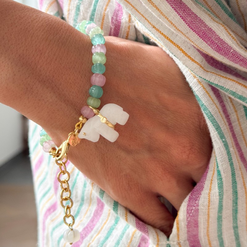 Bracelet adorned with a hand-carved little horse pendant made of white Agate stone.